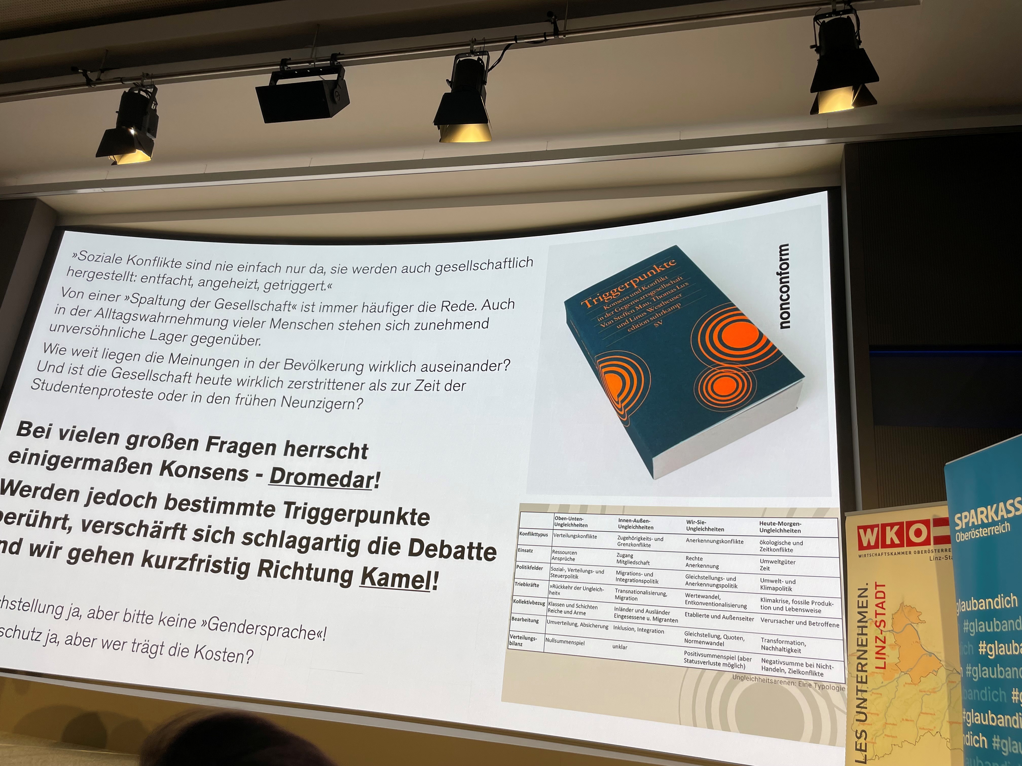 Ein besonderer Höhepunkt des Abends war die Keynote von Mag. Arch. Roland Gruber, MAS MBA, der mit seinem Vortrag „Krapfen statt Donut! Süßes Leben in der Mitte – Innenstädte als Zukunftsorte“ für Begeisterung sorgte. Mit viel Leidenschaft und fachlicher Tiefe zeigte er auf, wie wichtig lebendige Innenstädte für das wirtschaftliche und gesellschaftliche Zusammenleben sind – und warum gerade jetzt der richtige Zeitpunkt ist, wirtschaftlichen Wandel aktiv zu gestalten.